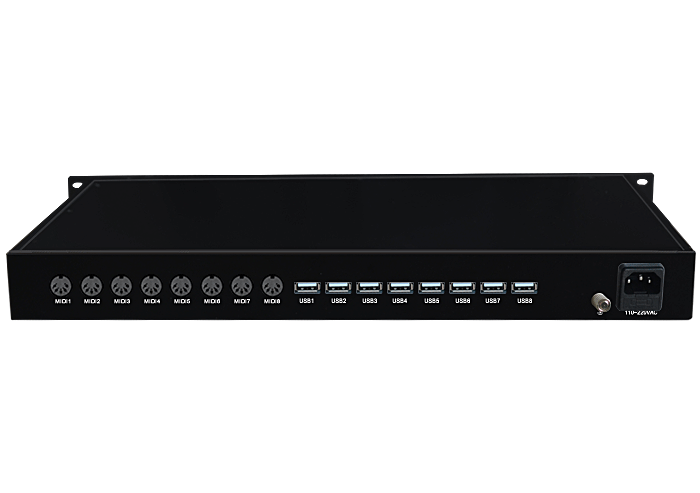 多路集中式MIDI/USB協(xié)議轉(zhuǎn)換器,USB1.1/2.0,獨(dú)立/冗余供電,1U機(jī)架,通用型 |