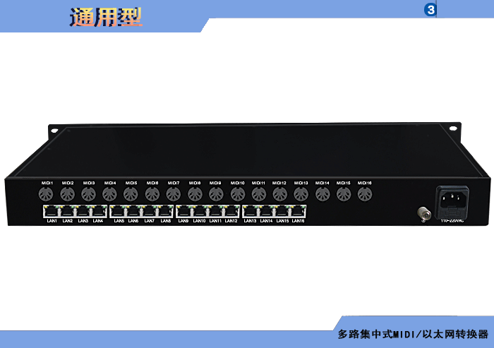 多路集中式MIDI/以太網協議轉換器,10/100M自適應,獨立/冗余供電,1U機架,通用型 |