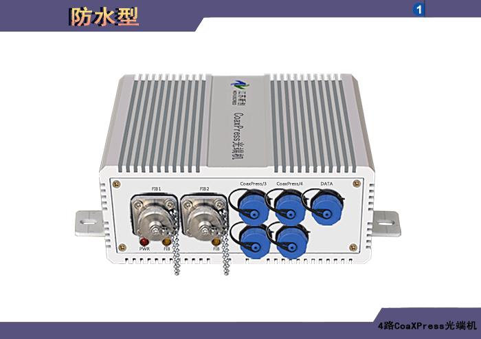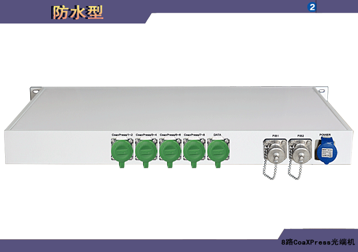 CoaXPress相機成像視覺系統冗余備份型光端機防水型封裝采用IP67/68等高等級防水機箱、防水接插件和連接線纜,使用相應的高性能防水密封、無浸潤和抗腐蝕技術,可以使得產品長期工作在高濕度、雨淋、風雪災難、水下作業、航海、海底鉆探和井下救災等需要高IP等級密封防水和腐蝕場合。
