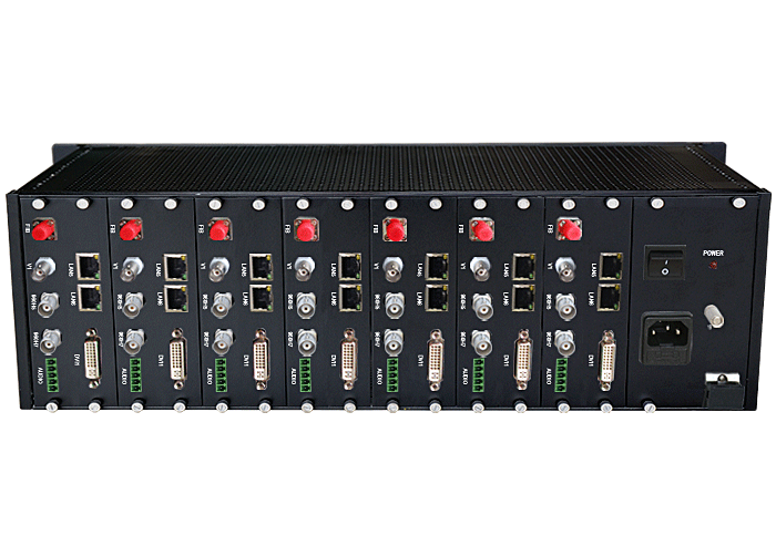 6路DVI復合信號型光端機發射機/接收機,復合信號可選,單模/多模/塑料,1/2纖,ST/FC/SC/LC/SFP光接口,15/20/25/32dB,獨立/冗余供電,機架,通用型 |