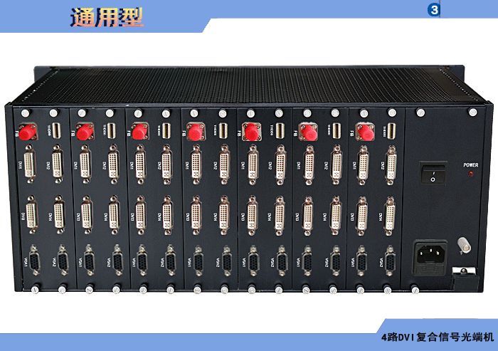 4路DVI復合信號型光端機發射機/接收機,復合信號可選,單模/多模/塑料,1/2纖,ST/FC/SC/LC/SFP光接口,15/20/25/32dB,獨立/冗余供電,機架,通用型 |