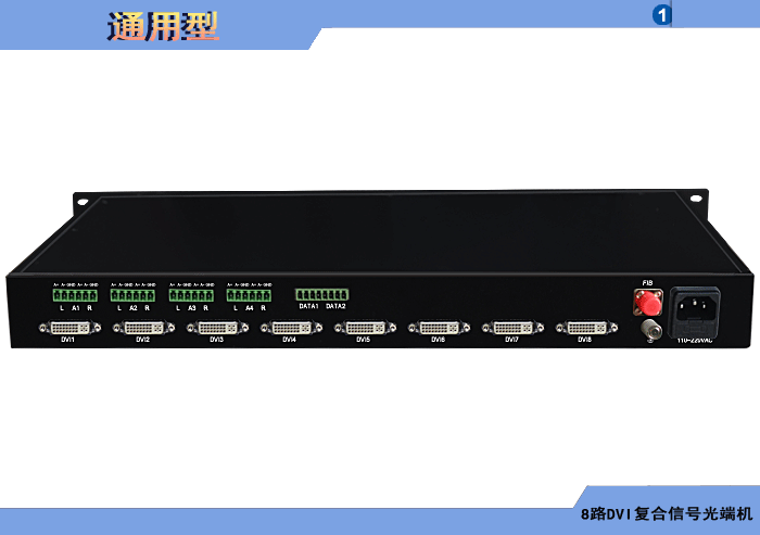 8路DVI復合信號型光端機發射機/接收機,復合信號可選,單模/多模/塑料,1/2纖,ST/FC/SC/LC/SFP光接口,15/20/25/32dB,獨立/冗余供電,機架,通用型 |