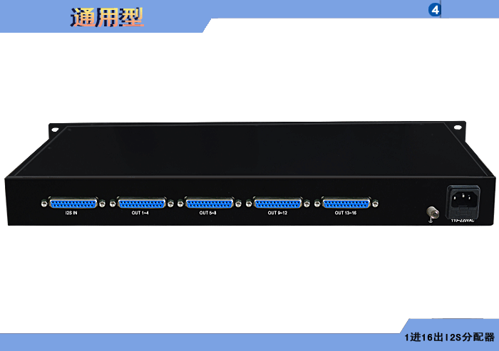 1進4出 I2S數字音頻總線分配器,內置數字均衡器/抖動去除器可選,獨立/冗余供電,壁掛,通用型 |