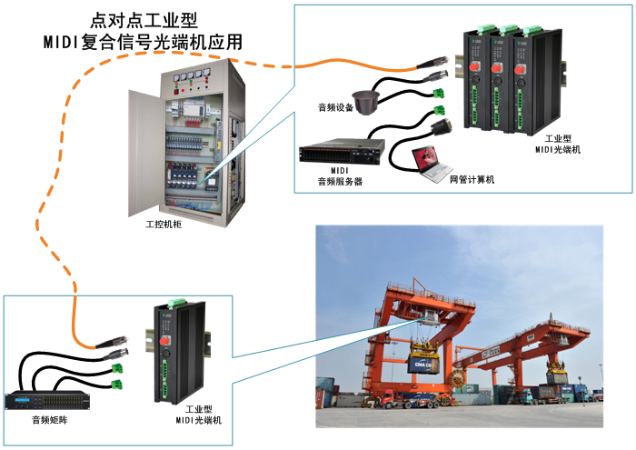 MIDI復合信號光端機能支持將各種品牌的安全防范、消防火災報警及救助系統、可視及非可視對講系統、門禁及讀卡系統、周界入侵振動檢測及控制主機、控制鍵盤、電子圍欄、激光紅外對射探測器、門禁控制器、電梯、按紐、門磁、指紋磁卡控電控鎖、自動門、感應門、收縮門、電子光柵、讀卡器、發卡器、收費機、考勤機、巡更、售飯機、停車場及票箱、車輛識別系統、道閘、哨位機、警戒系統的互聯互通。