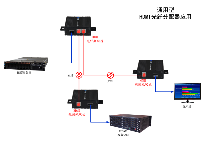 HDMI光纖分配器通用型封裝性價比高,滿足大多數應用場合,性能質量穩定。