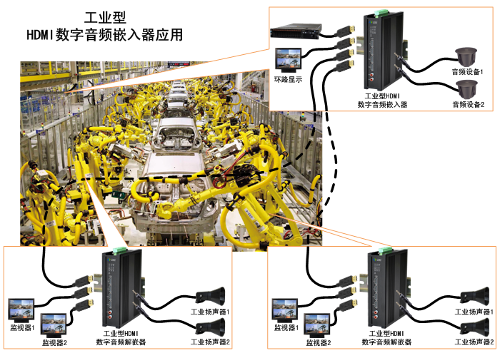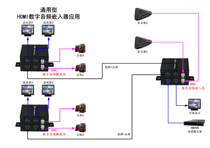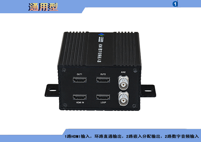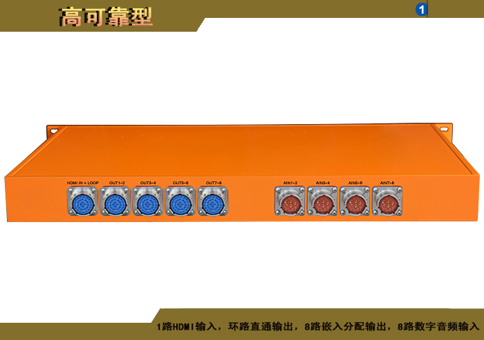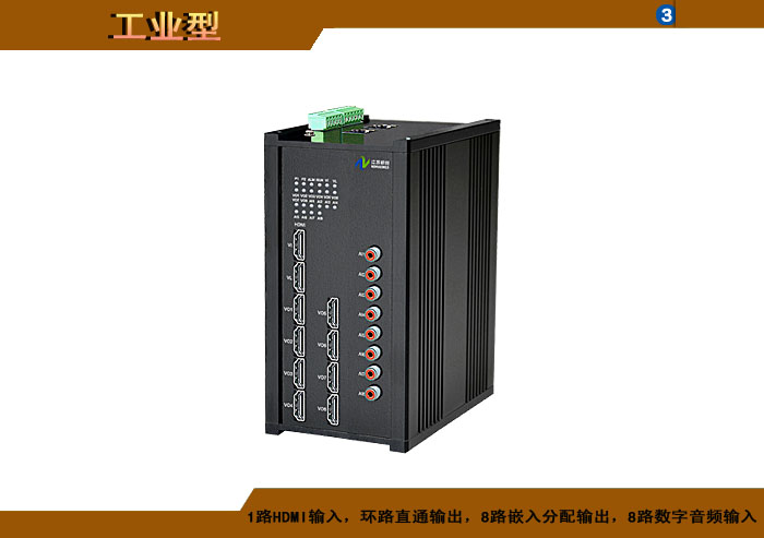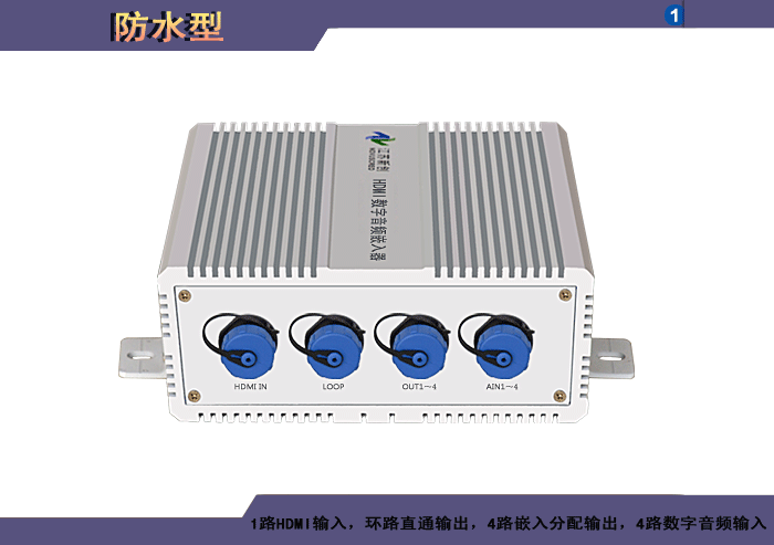 數字音頻HDMI嵌入器,1路HDMI輸入,環路直通輸出,2/4/8路嵌入分配輸出,2/4/8路數字音頻卡儂/BNC/RCA/光纖接口輸入,獨立/冗余供電,壁掛/機架,防水型 |