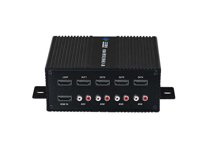 模擬音頻HDMI嵌入器,1路HDMI輸入,環路直通輸出,4路嵌入分配輸出,4路模擬音頻卡儂/端子/3.5mm/RCA接口輸入,獨立/冗余供電,壁掛,通用型 |