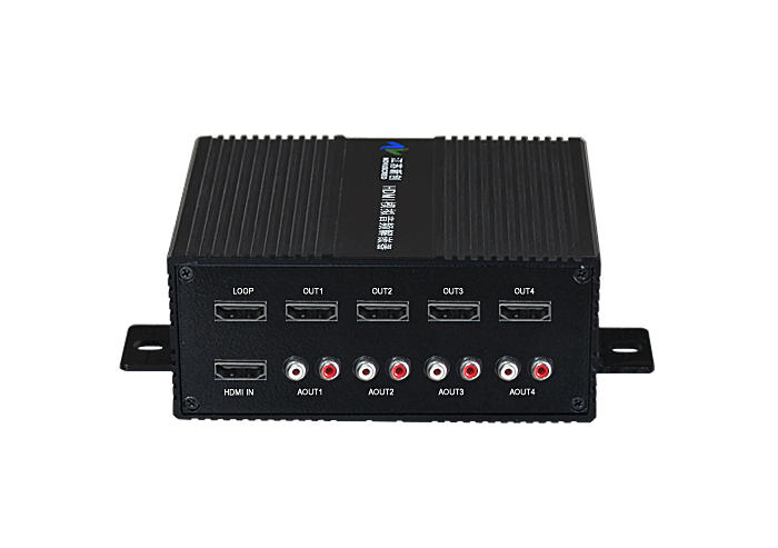 模擬音頻HDMI解嵌器,1路HDMI輸入,環路直通輸出,4路解嵌分配輸出,4路模擬音頻卡儂/端子/3.5mm/RCA接口輸出,獨立/冗余供電,壁掛,通用型 |