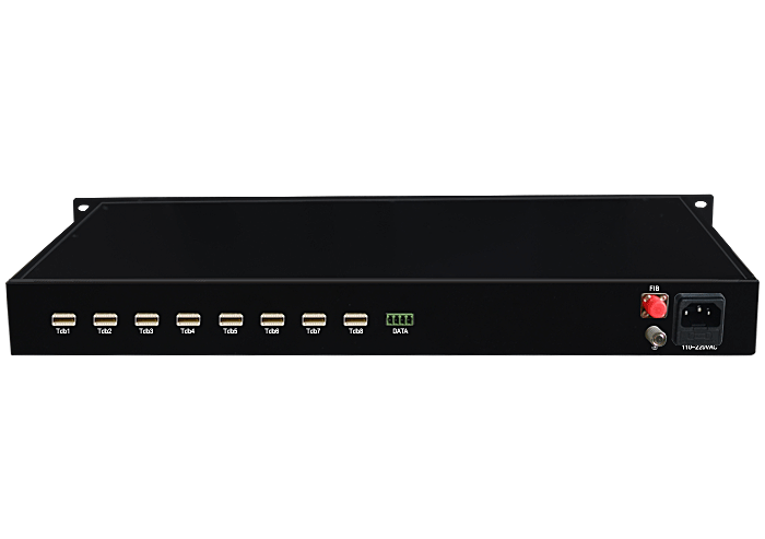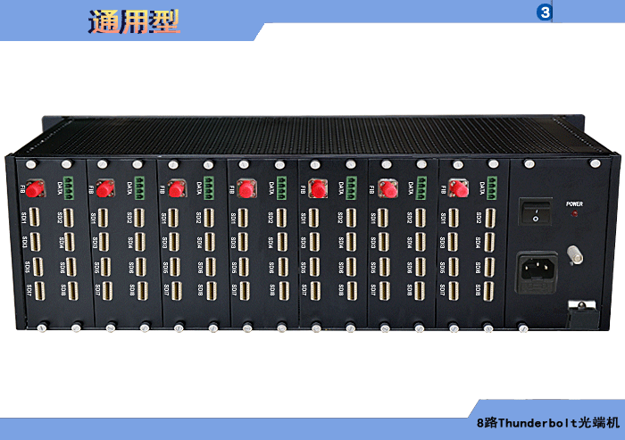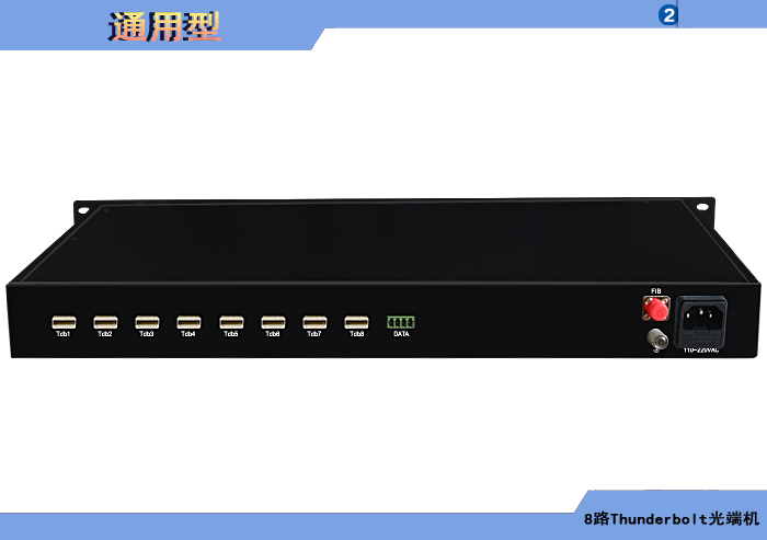 8路Thunderbolt簡單型光端機發射機/接收機,數據可選,單模/多模/塑料,1/2纖,ST/FC/SC/LC/SFP光接口,15/20/25/32dB,獨立/冗余供電,機架,通用型 |