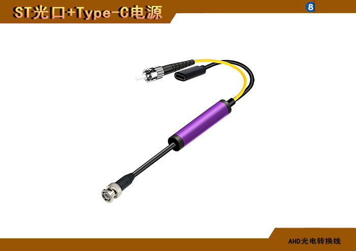 AHD光電轉(zhuǎn)換線 ST光纖接口+Type-C電源接口 |