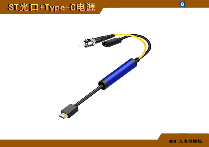 HDMI光電轉換線 ST光纖接口+圓孔電源接口 HDMI光電轉換線 ST光纖接口+Type-C電源接口