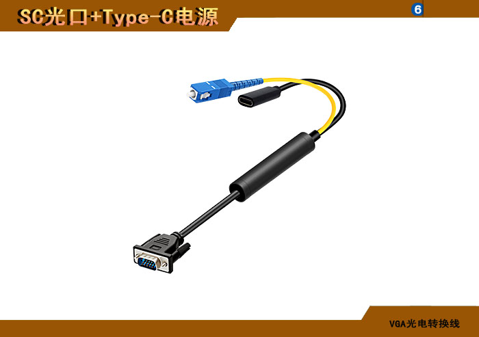 VGA光電轉(zhuǎn)換線 SC光纖接口+Type-C電源接口 |