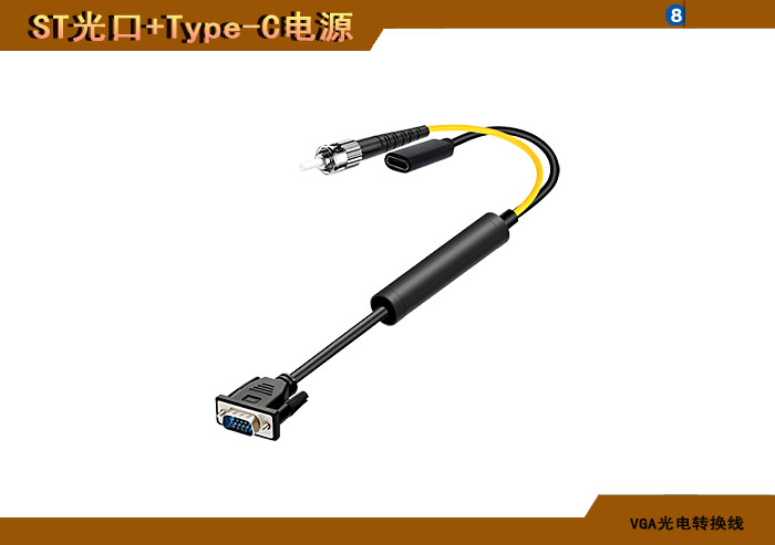 VGA光電轉(zhuǎn)換線 ST光纖接口+Type-C電源接口 |