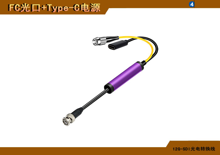 12G-SDI光電轉(zhuǎn)換線 FC光纖接口+Type-C電源接口 |