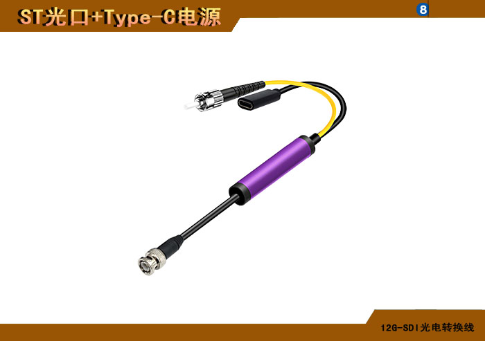 12G-SDI光電轉(zhuǎn)換線 ST光纖接口+Type-C電源接口 |