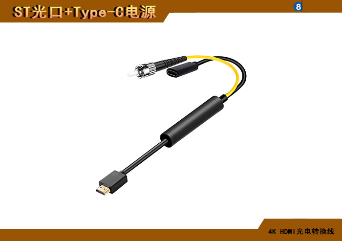 4K HDMI光電轉(zhuǎn)換線 ST光纖接口+Type-C電源接口 |