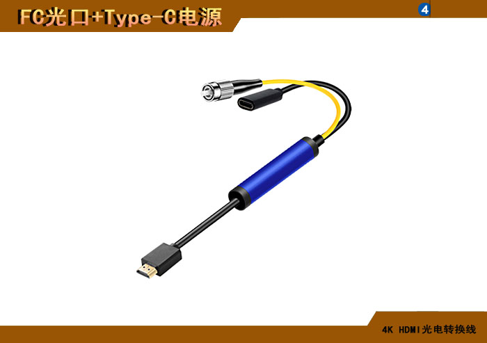 4K HDMI光電轉(zhuǎn)換線 FC光纖接口+Type-C電源接口 |