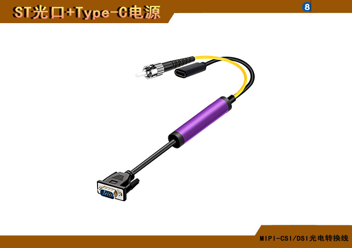 MIPI-CSI/DSI光電轉換線 ST光纖接口+Type-C電源接口 |