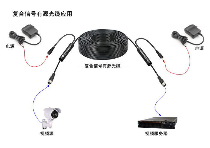 MIPI-CSI/DSI復合信號有源光纜AOC/光纖導線支持5V、12V(9~18V) 、24V(18~36V)、48V(36~72V)直流電源輸入設計,也可通過有源光纜中電纜混合的方式遠距離供電。