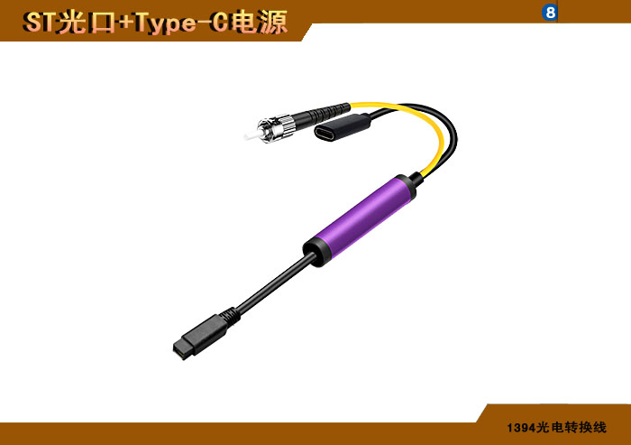 1394光電轉換線 ST光纖接口+圓孔電源接口 1394光電轉換線 ST光纖接口+Type-C電源接口