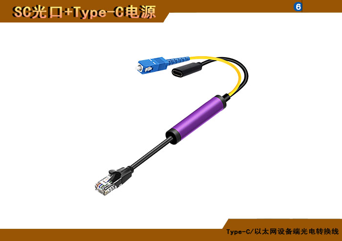 Type-C/以太網(wǎng)設(shè)備端光電轉(zhuǎn)換線 SC光纖接口+圓孔電源接口 |
