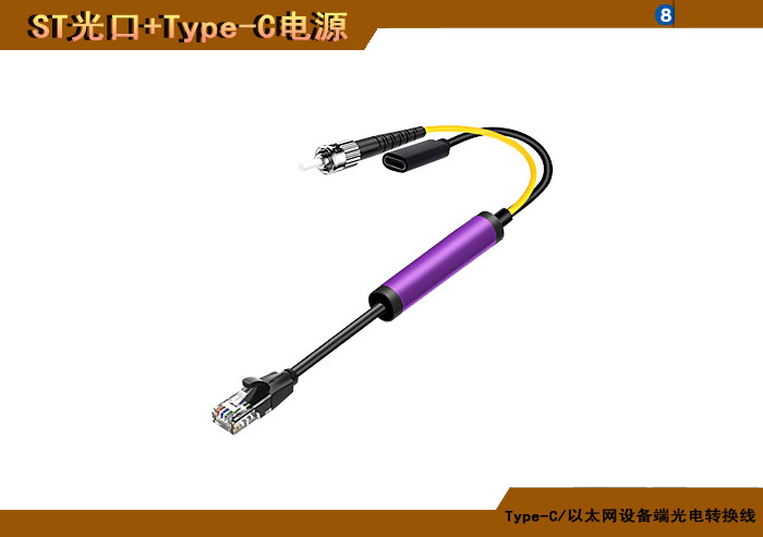 Type-C/以太網(wǎng)設(shè)備端光電轉(zhuǎn)換線 ST光纖接口+Type-C電源接口 |