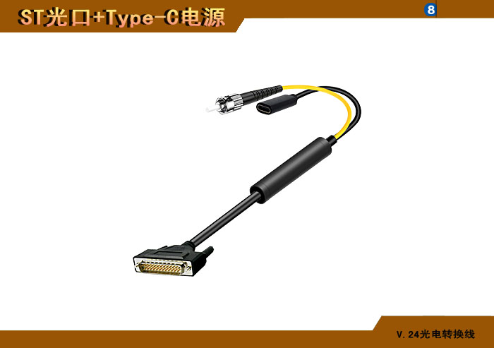 V.24光電轉換線 ST光纖接口+圓孔電源接口 V.24光電轉換線 ST光纖接口+Type-C電源接口