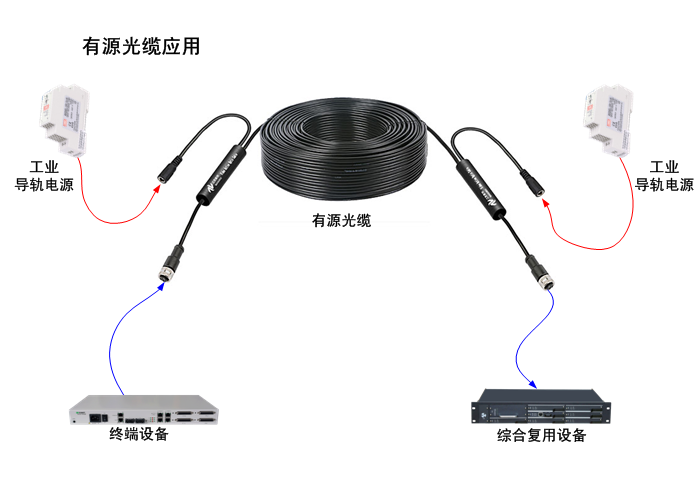 V.35有源光纜AOC/光纖導線支持5V、12V(9~18V) 、24V(18~36V)、48V(36~72V)直流電源輸入設計,也可通過有源光纜中電纜混合的方式遠距離供電。