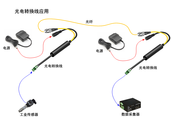 溫度量光電轉換線提供DC 5.5/2.1mm圓孔母座或Type-C母座電源供電輸入。