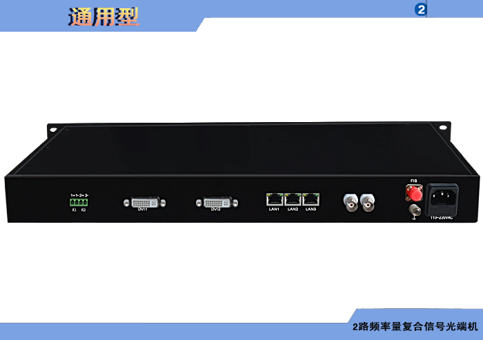 2路頻率量復合信號型光端機發射機/接收機,復合信號可選,單模/多模/塑料,1/2纖,ST/FC/SC/LC/SFP光接口,15/20/25/32dB,獨立/冗余供電,機架,通用型 |