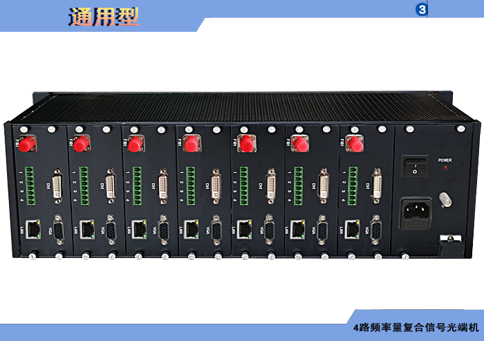 4路頻率量復合信號型光端機發射機/接收機,復合信號可選,單模/多模/塑料,1/2纖,ST/FC/SC/LC/SFP光接口,15/20/25/32dB,獨立/冗余供電,機架,通用型 |