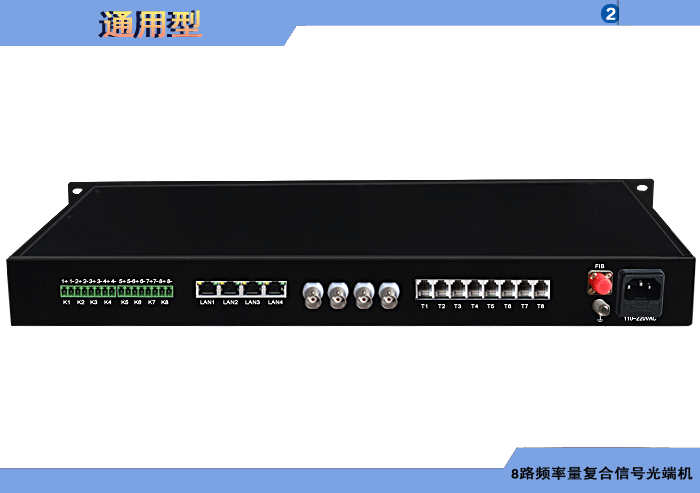 8路頻率量復合信號型光端機發射機/接收機,復合信號可選,單模/多模/塑料,1/2纖,ST/FC/SC/LC/SFP光接口,15/20/25/32dB,獨立/冗余供電,機架,通用型 |