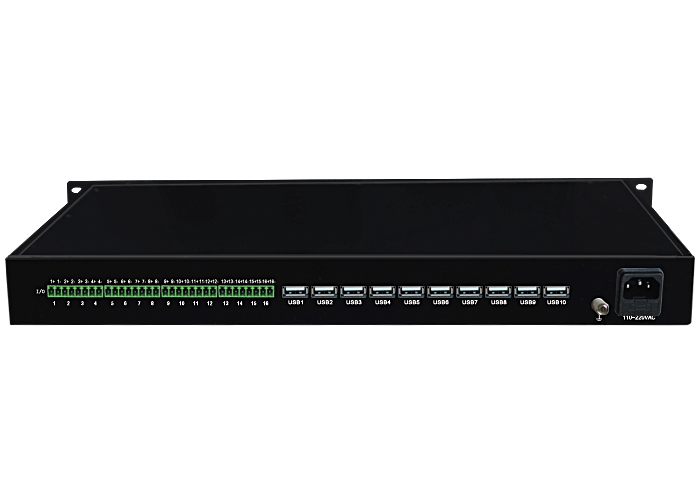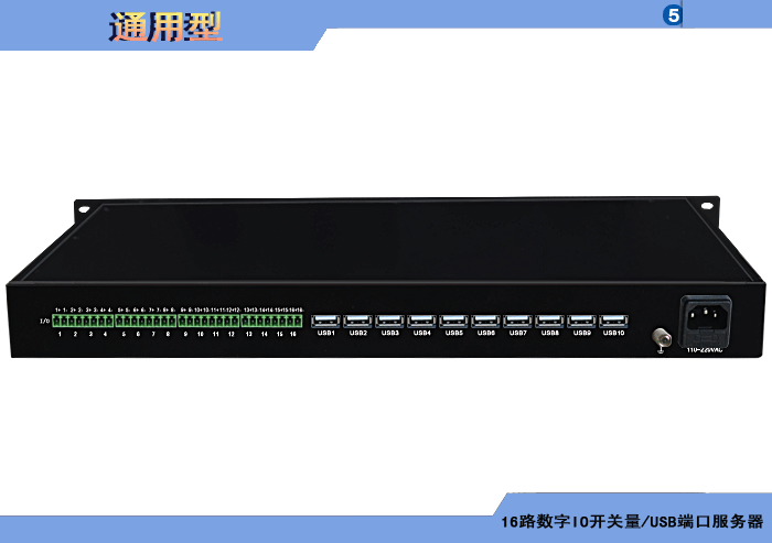 16路數字IO開關量/USB端口服務器,1路USB主口輸入、可選多路下游口輸出,可選內置數字隔離器,最大隔離電壓2500/5000Vrms,可選內置5/10KA浪涌保護器,獨立/冗余/總線供電(DC18~36V/5V),壁掛/插卡/機架,通用型 |