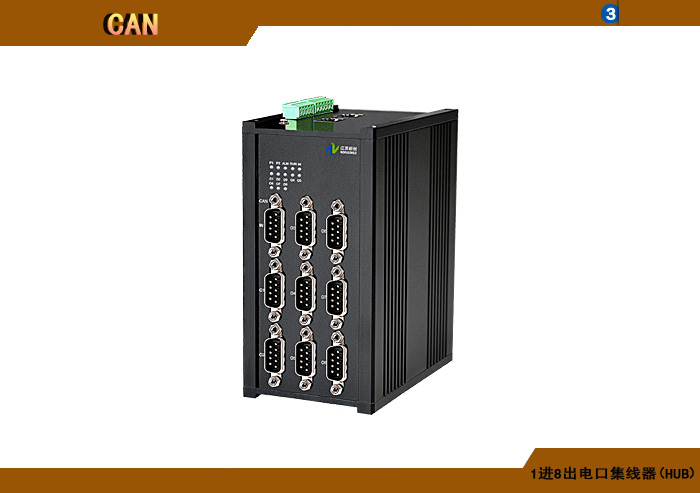 1進8出CAN集線器(HUB),125K/1M/2M/5Mbps速率可選,獨立/冗余供電,壁掛,通用型 |