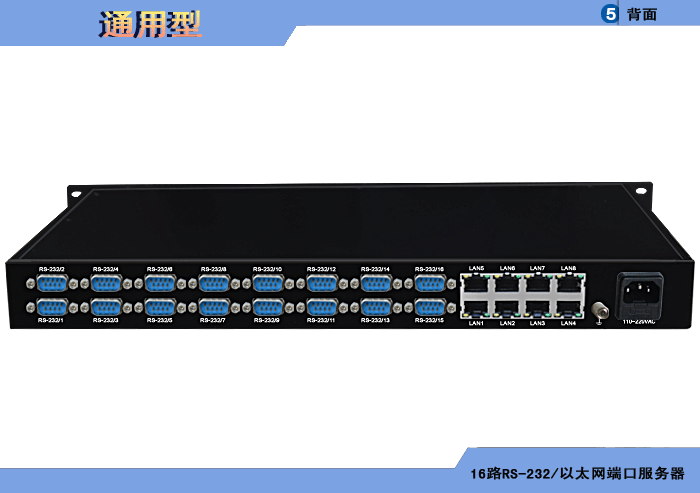 16路RS-232/以太網端口服務器,可選多路10/100M或10/100/1000M以太網接口,可選內置數字隔離器,最大隔離電壓2500/5000Vrms,可選內置5/10KA浪涌保護器,獨立/冗余供電,機架,通用型 |