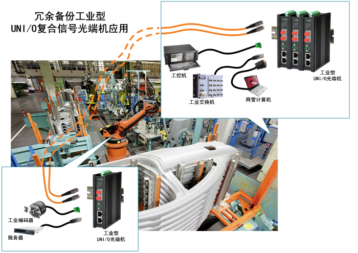UNI/O復合信號冗余備份型光端機同時支持10M/100M/1G/10G高可靠工業實時以太網接口在光纖上穩定可靠傳輸。支持特長距離、標準距離雙絞線或同軸電纜、單模或多模光纖、電力線、EOC、VDSL、EPON光纖等等以太網接口。