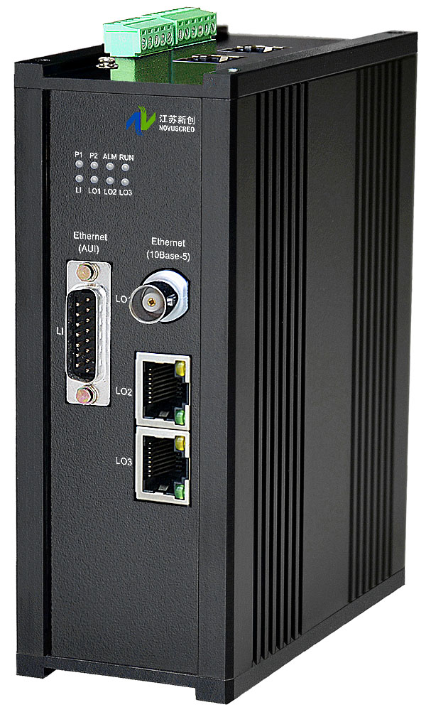 Ethernet(AUI)集線器(HUB) 是江蘇新創(chuàng)自主研發(fā)創(chuàng)新,專門為工業(yè)自動(dòng)化控制系統(tǒng)、PLC/DCS系統(tǒng)、信號(hào)測(cè)量及數(shù)據(jù)采集系統(tǒng)的現(xiàn)場(chǎng)各種IO設(shè)備、儀器儀表、電壓、電流、電量、溫度、壓力、流量、液位、電位、位置、煙霧、化學(xué)元素檢測(cè)等等各種傳感器、編碼器、計(jì)數(shù)器、變頻器、伺服器、執(zhí)行器輸出的Ethernet(AUI)信號(hào)轉(zhuǎn)換成1路10Base-5出同時(shí)分配或擴(kuò)展輸出成多路10Base-T輸出,這樣大大方便了多個(gè)用戶同時(shí)共享同一總線。采用零延遲自動(dòng)方向切換技術(shù)及底層接口轉(zhuǎn)換技術(shù),透明符合和兼容Ethernet(AUI/10Base-5/10Base-T)總線標(biāo)準(zhǔn),采用底層轉(zhuǎn)換技術(shù),透明支持任意Ethernet(AUI/10Base-5/10Base-T)上層協(xié)議,支持最大10Mbps的總線工作速率。內(nèi)置電纜自動(dòng)均衡器和時(shí)鐘重定時(shí)功能,因此大大降低及保證了輸出波形失真和數(shù)字信號(hào)抖動(dòng)的要求,提高了輸入輸出信號(hào)質(zhì)量,單段電纜總線長(zhǎng)度Ethernet(AUI)輸入接口可達(dá)50米,Ethernet(10Base-5)輸入接口可達(dá)500米,Ethernet(10Base-T)輸出接口可達(dá)100米,最大節(jié)點(diǎn)數(shù)100/254個(gè)。支持輸入、輸出及電源三端隔離,采用先進(jìn)的高速數(shù)字隔離技術(shù),其傳輸速度和熱穩(wěn)定性遠(yuǎn)高于普通的光電隔離器;內(nèi)置15KV靜電保護(hù)器,可有效防止設(shè)備之間由于地不平衡引起的串口損壞及靜電擊穿。內(nèi)置的高性能的兩級(jí)粗細(xì)抗雷擊保護(hù)裝置,支持共模和差模兩種保護(hù)模式。高達(dá)10KA通流量的第一級(jí)粗保護(hù)電路能夠有效的降低和抑制雷電、浪涌大信號(hào)沖擊;第二級(jí)精細(xì)保護(hù)電路能夠有效去除小信號(hào)殘留電壓沖擊及干擾信號(hào)。所有保護(hù)電路都采用高可靠、低殘壓、低寄生電容及快速響應(yīng)保護(hù)時(shí)間的防雷器件。