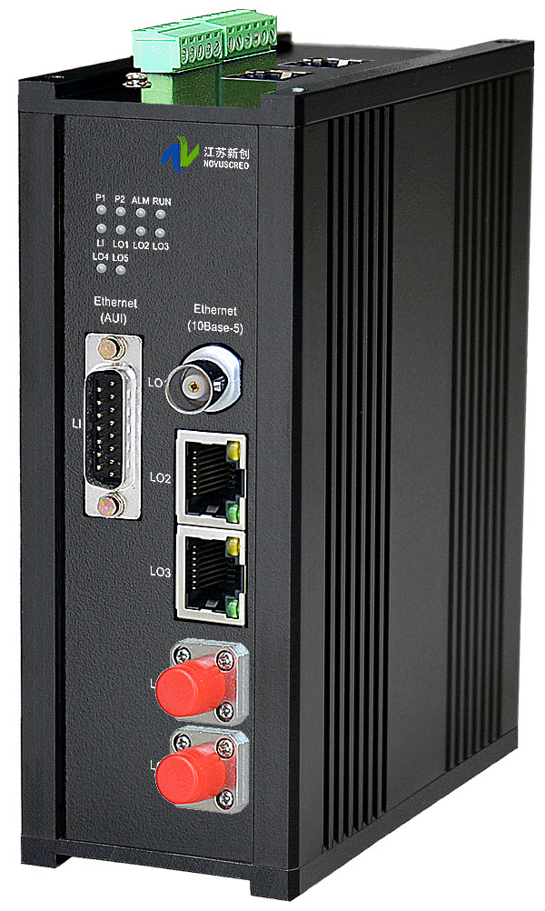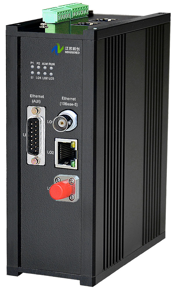 Ethernet(AUI)光電集線器(HUB) 是江蘇新創(chuàng)自主研發(fā)創(chuàng)新,專門為工業(yè)自動化控制系統(tǒng)、PLC/DCS系統(tǒng)、信號測量及數(shù)據(jù)采集系統(tǒng)的現(xiàn)場各種IO設(shè)備、儀器儀表、電壓、電流、電量、溫度、壓力、流量、液位、電位、位置、煙霧、化學元素檢測等等各種傳感器、編碼器、計數(shù)器、變頻器、伺服器、執(zhí)行器輸出的Ethernet(AUI)信號轉(zhuǎn)換成1路10Base-5出同時分配或擴展輸出成多路10Base-FL光纖輸出,這樣大大方便了多個用戶同時共享同一總線。采用零延遲自動方向切換技術(shù)及底層接口轉(zhuǎn)換技術(shù),透明符合和兼容Ethernet(AUI/10Base-5/10Base-FL)總線標準,采用底層轉(zhuǎn)換技術(shù),透明支持任意Ethernet(AUI/10Base-5/10Base-FL)上層協(xié)議,支持最大10Mbps的總線工作速率。內(nèi)置電纜自動均衡器和時鐘重定時功能,因此大大降低及保證了輸出波形失真和數(shù)字信號抖動的要求,提高了輸入輸出信號質(zhì)量,單段電纜總線長度Ethernet(AUI)輸入接口可達50米,Ethernet(10Base-5)輸入接口可達500米,最大節(jié)點數(shù)100/254個。支持輸入、輸出及電源三端隔離,采用先進的高速數(shù)字隔離技術(shù),其傳輸速度和熱穩(wěn)定性遠高于普通的光電隔離器;內(nèi)置15KV靜電保護器,可有效防止設(shè)備之間由于地不平衡引起的串口損壞及靜電擊穿。內(nèi)置的高性能的兩級粗細抗雷擊保護裝置,支持共模和差模兩種保護模式。高達10KA通流量的第一級粗保護電路能夠有效的降低和抑制雷電、浪涌大信號沖擊;第二級精細保護電路能夠有效去除小信號殘留電壓沖擊及干擾信號。所有保護電路都采用高可靠、低殘壓、低寄生電容及快速響應(yīng)保護時間的防雷器件。
