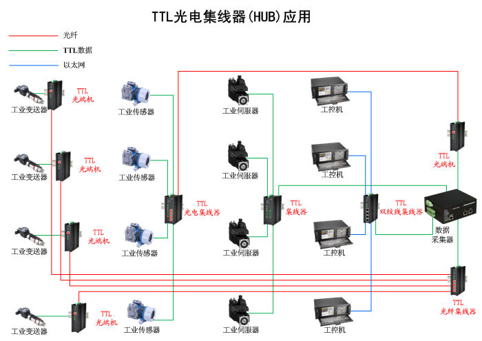1/2/4/8/16進2/4/8/16/32出TTL光電集線器(HUB),獨立/冗余供電,壁掛/機架,防水型 |
