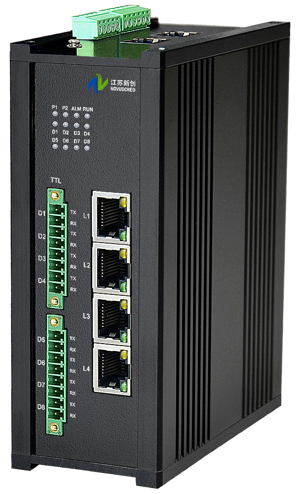 4路TTL/以太網網關,可選多路10/100M或10/100/1000M以太網電纜或光纖接口,可選內置數字隔離器,最大隔離電壓2500/5000Vrms,可選內置5/10KA浪涌保護器,獨立/冗余/總線供電(DC18~36V/5V),導軌,工業型 |
