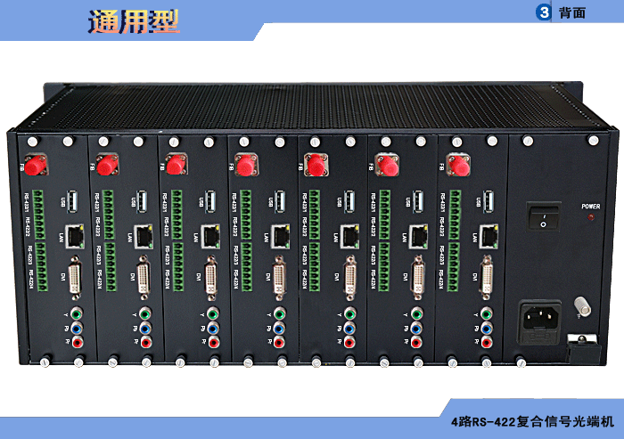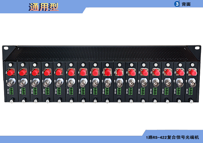 4路RS-422復合信號型光端機發射機/接收機,復合信號可選,單模/多模/塑料,1/2纖,ST/FC/SC/LC/SFP光接口,15/20/25/32dB,獨立/冗余供電,機架,通用型 |