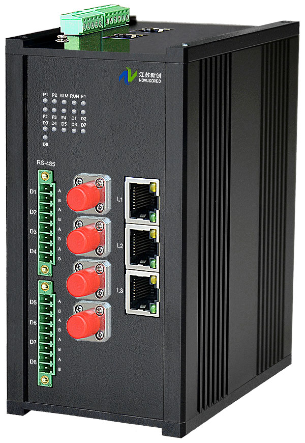 1/2/4/8/16/24/32/48路RS-485/以太網光電端口服務器,可選多路10/100M或10/100/1000M以太網和RS-485電纜或光纖接口,可選內置數字隔離器,最大隔離電壓2500/5000Vrms,可選內置5/10KA浪涌保護器,獨立/冗余供電,壁掛/機架,高可靠型 |