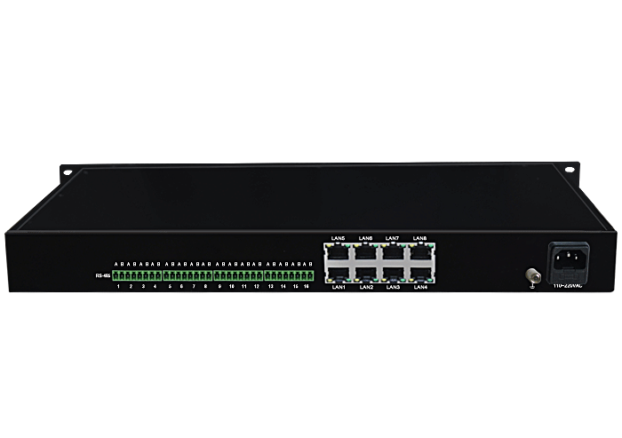 16路RS-485/以太網端口服務器,可選多路10/100M或10/100/1000M以太網接口,可選內置數字隔離器,最大隔離電壓2500/5000Vrms,可選內置5/10KA浪涌保護器,獨立/冗余供電,機架,通用型 |