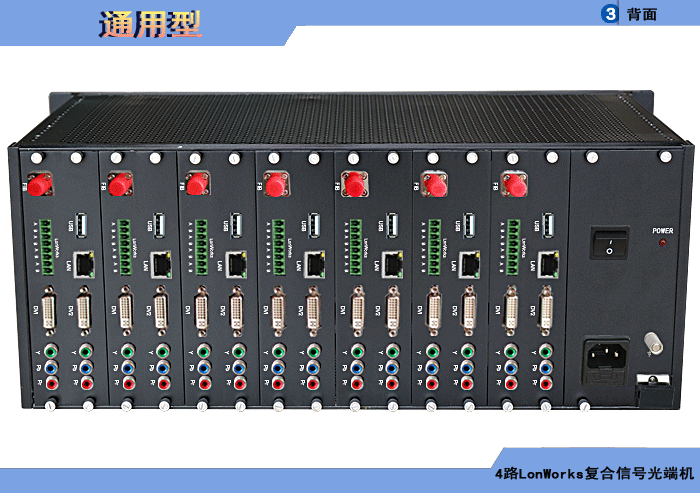 4路Lonworks復合信號型光端機發射機/接收機,RS-485/雙絞線/電力線接口可選,78K/1.25Mbps,復合信號可選,單模/多模/塑料,1/2纖,ST/FC/SC/LC/SFP光接口,15/20/25/32dB,獨立/冗余供電,機架,通用型 |
