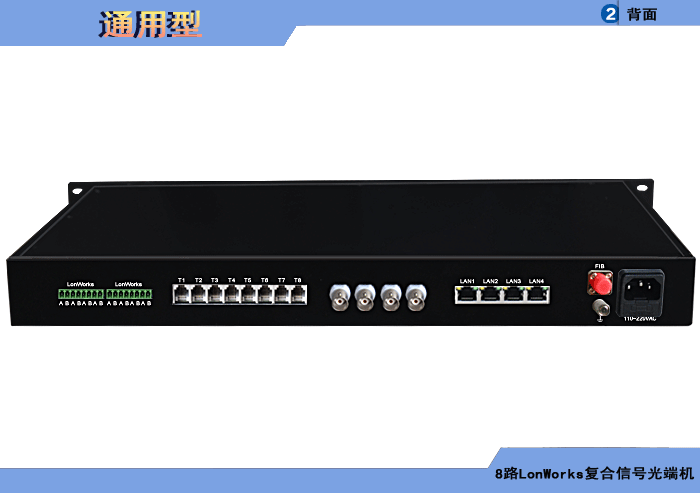8路Lonworks復合信號型光端機發射機/接收機,RS-485/雙絞線/電力線接口可選,78K/1.25Mbps,復合信號可選,單模/多模/塑料,1/2纖,ST/FC/SC/LC/SFP光接口,15/20/25/32dB,獨立/冗余供電,機架,通用型 |