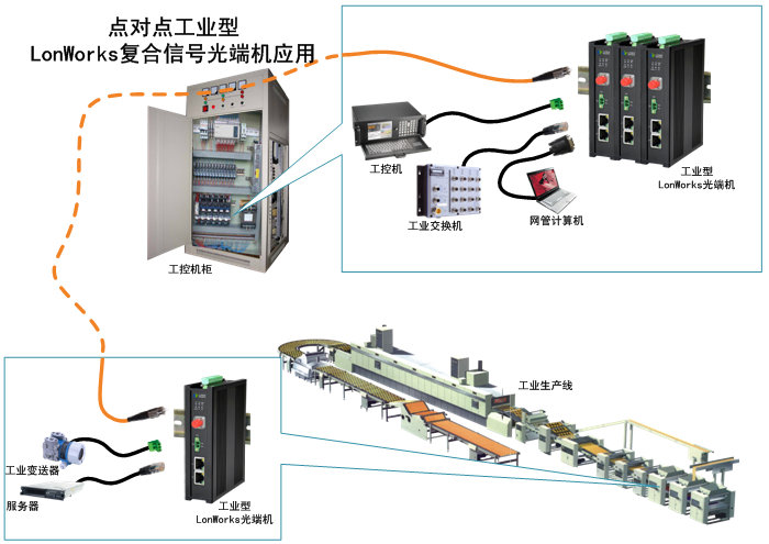 1路Lonworks復合信號型光端機發射機/接收機,RS-485/雙絞線/電力線接口可選,78K/1.25Mbps,復合信號可選,單模/多模/塑料,1/2纖,ST/FC/SC/LC/SFP光接口,15/20/25/32dB,獨立/冗余/總線供電(DC18~36V/5V),導軌,工業型,非網管/網管/帶光纖數字診斷網管 |