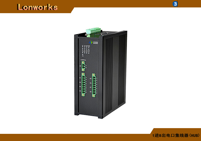 1進8出Lonworks集線器(HUB),RS-485/雙絞線/電力線接口可選,78K/1.25Mbps,復合信號可選獨立/冗余供電,壁掛,通用型 |