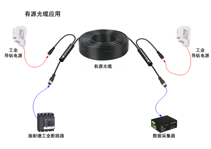 S908 RIO有源光纜AOC/光纖導線支持5V或24V(18~36V)直流電源輸入設計,也可通過有源光纜中電纜混合的方式遠距離供電。