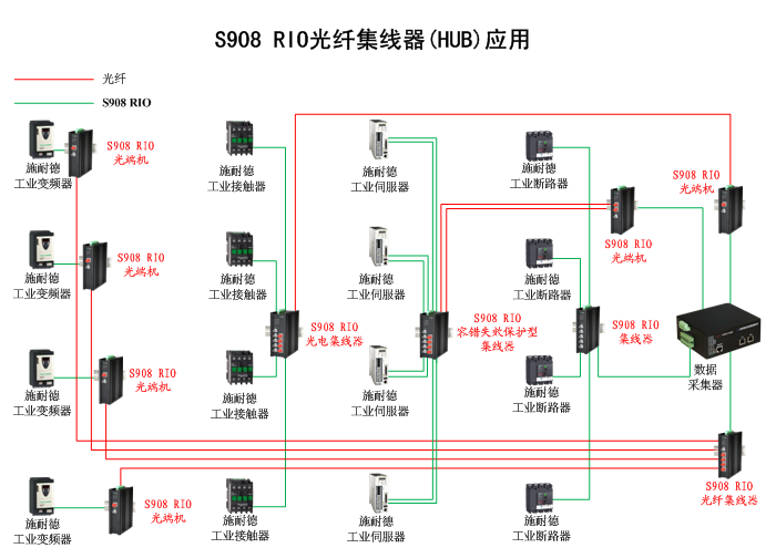 1進16出S908 RIO光纖集線器(HUB),獨立/冗余供電,機架,通用型 |