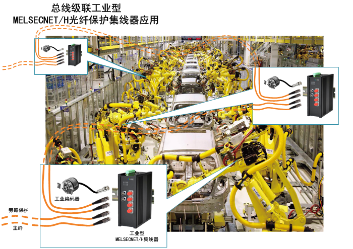 MELSECNET/H總線型光纖保護集線器(HUB)已經廣泛應用在石油化工、礦山開采及冶煉廠礦企業、高鐵及地鐵軌道交通、橋梁隧道、城市管理公交BRT及公用設施、海島港灣碼頭、大壩及河道水利、燃煤氣自來水及污水處理、能源發電和輸配變電網、環境監測和保護、物聯網及大數據機房控制中心、食品加工、工業自動化自動控制及數據采集、機器人及視覺控制、傳感及執行器運動控制、醫學影像、船舶運輸、物探及地震海洋勘探、海上及水下作業及鉆探井平臺的PLC/DCS等自動控制及數據采集系統中。